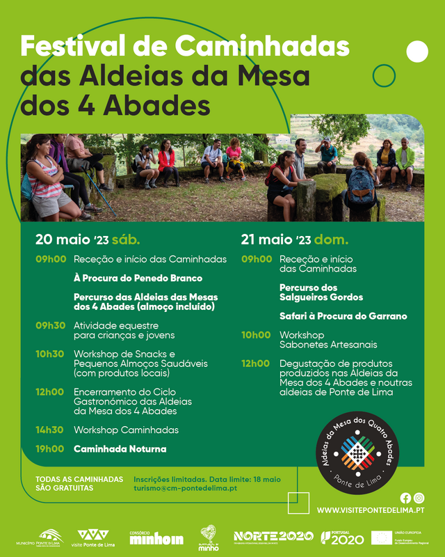 Nos dias 20 e 21 de maio de 2023, o Município de Ponte de Lima organiza o Festival de Caminhadas das Aldeias da Mesa dos 4 Abades com várias caminhadas, workshops e atividades com cavalos garranos. Todas as caminhadas são gratuitas, mas com inscrição obrigatória até 18 de maio.