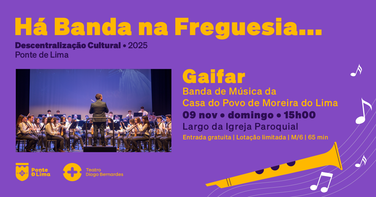 A 9 de novembro, às 15h00, Há Banda na Freguesia... de Gaifar, pela Banda de Música da Casa do Povo de Moreira do Lima, com entradas gratuitas.