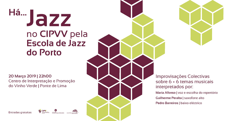 A 20 de março, às 22h00, no CIPVV - Centro de Interpretação e Promoção do Vinho Verde, com entradas gratuitas, Há... Jazz no CIPVV, pela Escola de Jazz do Porto, com Improvisações colectivas sobre 6 + 6 temas musicais interpretados por: