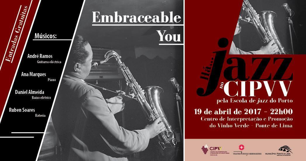 No dia 19 de Abril, às 22h00, Há... Jazz no CIPVV - Centro de Interpretação e Promoção do Vinho Verde, numa organização conjunta do Teatro Diogo Bernardes - Ponte de Lima e do CIPVV - Centro de Interpretação e Promoção do Vinho Verde, sob a responsabilidade geral do Municipio Ponte de Lima.