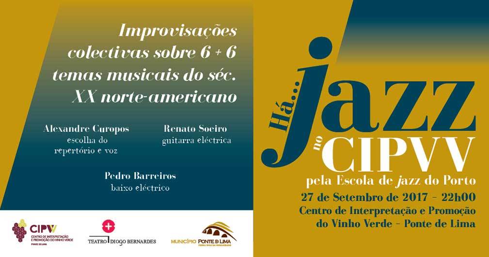No dia 27 de Setembro, às 22h00, Há... Jazz no CIPVV - Centro de Interpretação e Promoção do Vinho Verde, numa organização conjunta do Teatro Diogo Bernardes - Ponte de Lima e do CIPVV - Centro de Interpretação e Promoção do Vinho Verde, sob a responsabilidade geral do Municipio Ponte de Lima.