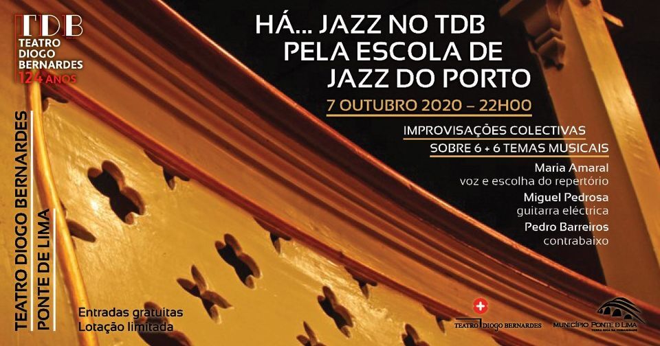A 7 de outubro, às 22h00, no Teatro Diogo Bernardes, em Ponte de Lima, com entradas gratuitas e lotação limitada, Há... Jazz no TDB - Teatro Diogo Bernardes, a cargo da Escola de Jazz do Porto, com Improvisações Colectivas sobre 6 + 6 temas musicais interpretados por: