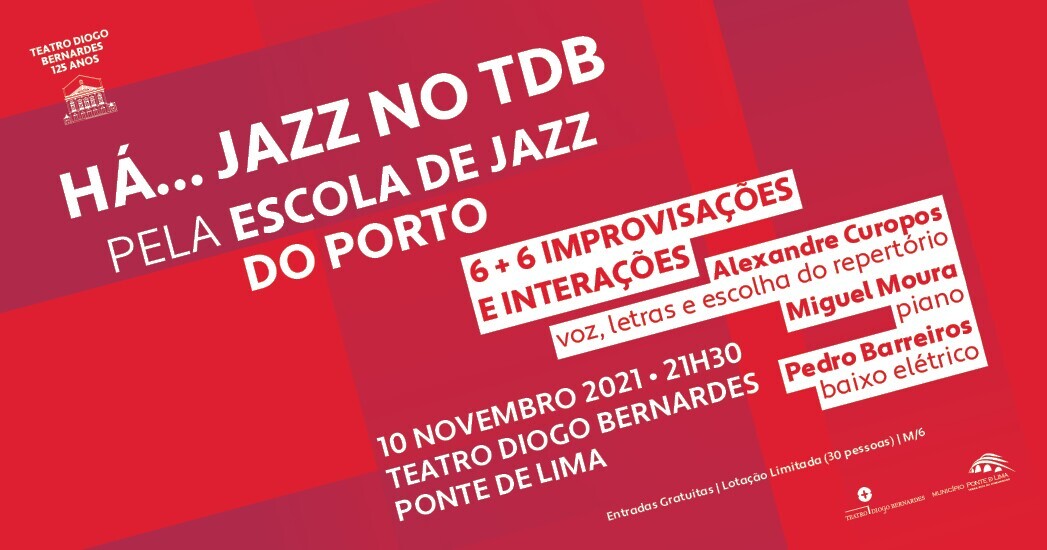 A 10 de novembro, às 21h30, no Teatro Diogo Bernardes, com entradas gratuitas e lotação limitada, Há... Jazz no TDB, pela Escola de Jazz do Porto, com "6 + 6 Improvisações e Interações".