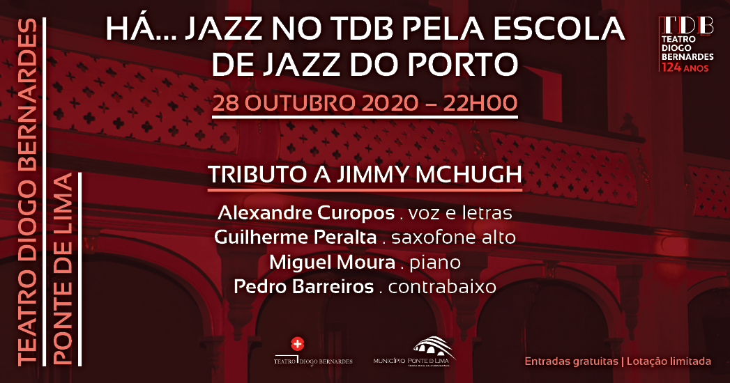A 28 de Outubro, às 22h00, no Teatro Diogo Bernardes, em Ponte de Lima, com entradas gratuitas e lotação limitada, Há... Jazz no TDB - Teatro Diogo Bernardes, a cargo da Escola de Jazz do Porto, com um Tributo a Jimmy McHugh, com: