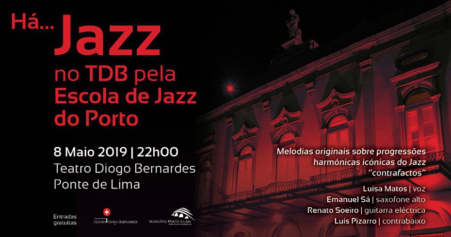 A 8 de maio, às 22h00, no Teatro Diogo Bernardes, em Ponte de Lima, com entradas gratuitas, Há... Jazz no TDB - Teatro Diogo Bernardes, a cargo da Escola de Jazz do Porto, em que serão interpretadas Melodias originais sobre progressões harmónicas icónicas do Jazz "contrafactos", por: