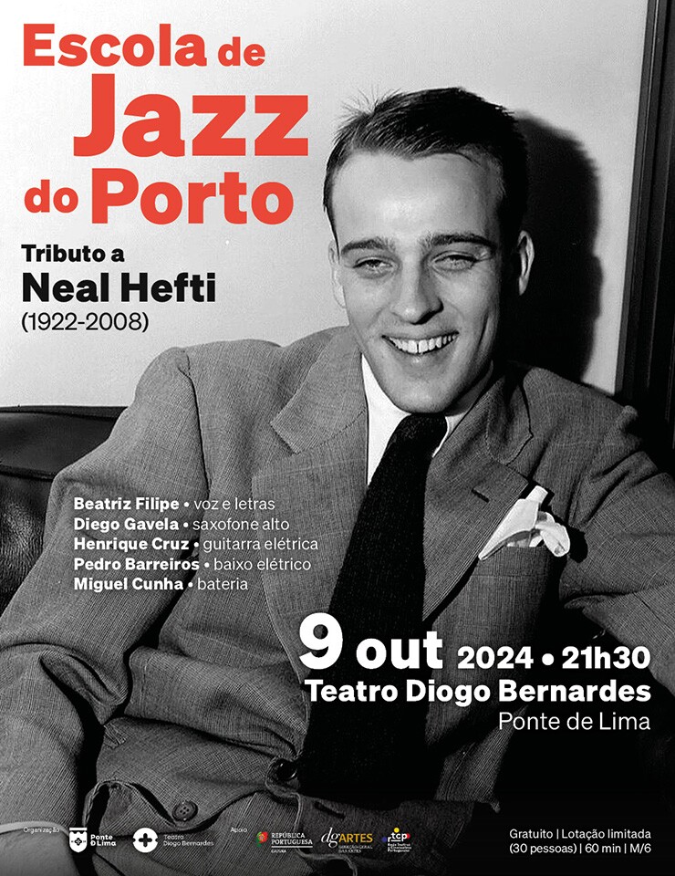 No dia 9 de outubro de 2024, às 21h30, o Teatro Diogo Bernardes, em Ponte de Lima, apresenta o espetáculo de jazz, Há... Jazz no TDB - Tributo a Neal Hefti (1922 - 2008), pela Escola de Jazz do Porto.