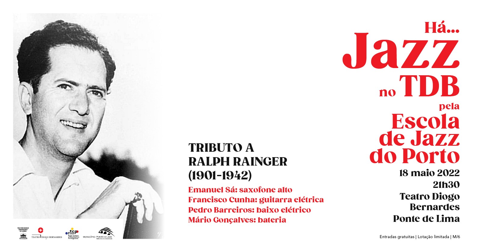A 18 de maio de 2022, às 21h30, no Teatro Diogo Bernardes, em Ponte de Lima, apresenta o espetáculo de Jazz, Há... Jazz no TDB - Tributo a Ralph Rainger (1901-1942), pela Escola de Jazz do Porto.