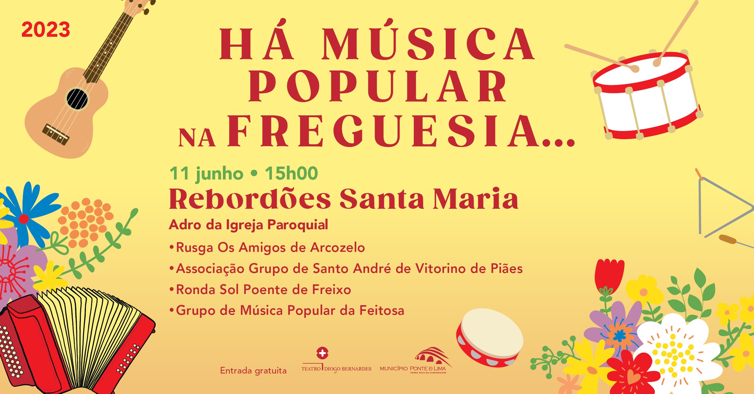 A 11 de junhi de 2023, às 15h00, com entradas gratuitas, Há Música Popular na Freguesia... de Rebordões Santa Maria, com a participação dos seguintes grupos: