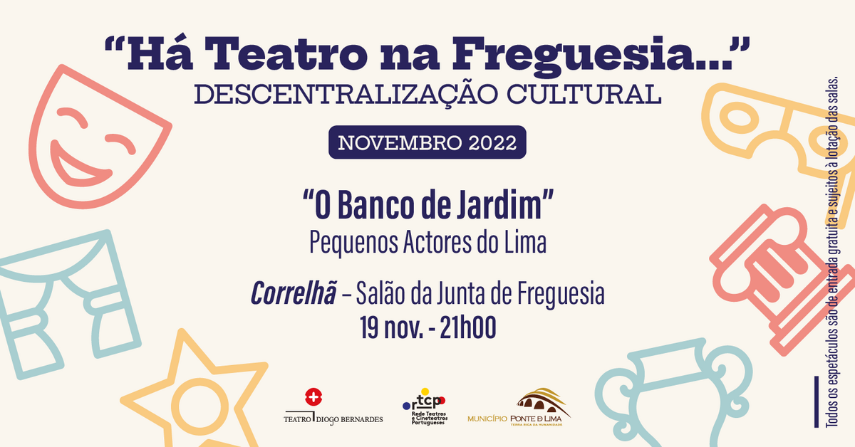 A 19 de novembro, às 21h00, Há Teatro na Freguesia... de Correlhã, com o espetáculo "O Banco de Jardim", pelos Pequenos Actores do Lima, com entradas gratuitas e sujeito à lotação da sala.