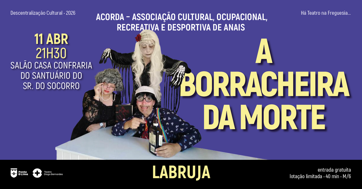 No dia 11 de abril de 2026, às 21h30, Há Teatro na Freguesia... da Labruja, com o espetáculo "A Borracheira da Morte", pelo ACORDA - Associação Cultural, Ocupacional, Recreativa e Desportiva de Anais, no Salão da Casa da Confraria do Santuário do Sr. do Socorro.