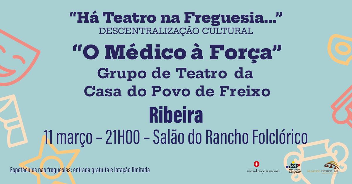 A 11 de março de 2023, às 21h00, Há Teatro na Freguesia... da Ribeira, com o espetáculo "O Médico à Força", pelo Grupo de Teatro da Casa do Povo de Freixo, com entradas gratuitas e sujeito à lotação da sala.