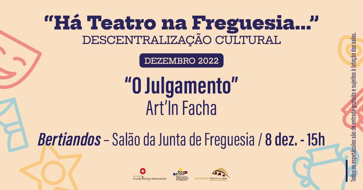 A 8 de dezembro de 2022, às 15h00, Há Teatro na Freguesia... de Bertiandos, com o espetáculo "O Julgamento", pela Art'In Facha, com entradas gratuitas e sujeito à lotação da sala.