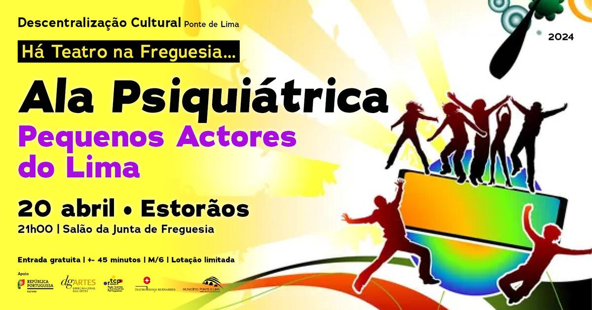 A 20 de abril de 2024, às 21h00, Há Teatro na Freguesia... de Estorãos, com o espetáculo "Ala Psiquiátrica", pelo Pequenos Actores do Lima.
