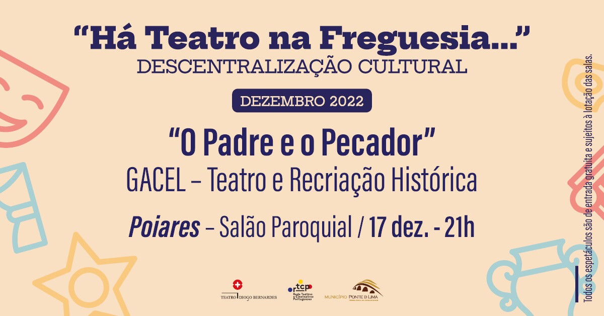 A 17 de dezembro 2022, às 21h00, Há Teatro na Freguesia... de Poiares, com o espetáculo "O Padre e o Pecador", pela GACEL - Teatro e Recriação Histórica, com entradas gratuitas e sujeito à lotação da sala.
