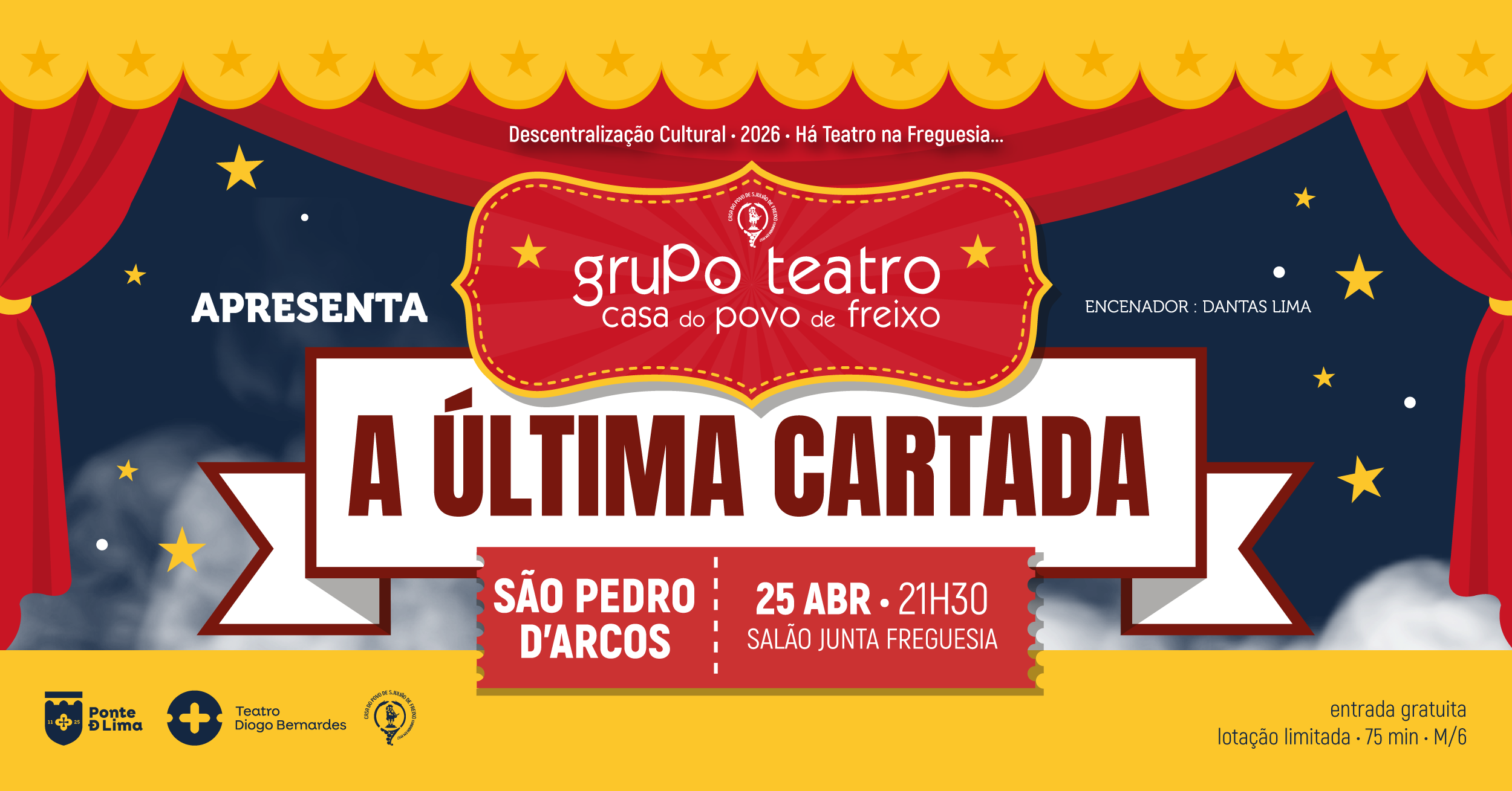 No dia 25 de abril de 2026, às 21h30, Há Teatro na Freguesia... de São Pedro d'Arcos, com o espetáculo "A Última Cartada", pelo Grupo de Teatro da Casa do Povo de Freixo, no Salão da Junta de Freguesia.