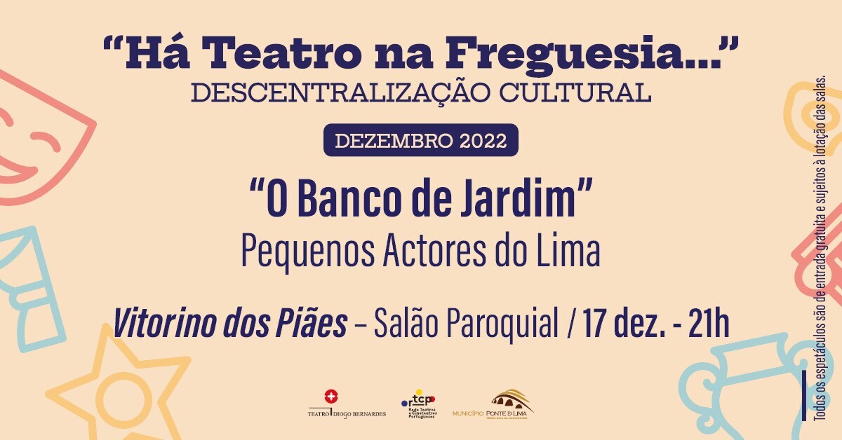 A 17 dezembro de 2022, às 21h00, Há Teatro na Freguesia... de Vitorino dos Piães, com o espetáculo "O Banco de Jardim", pelos Pequenos Actores do Lima, com entradas gratuitas e sujeito à lotação da sala.
