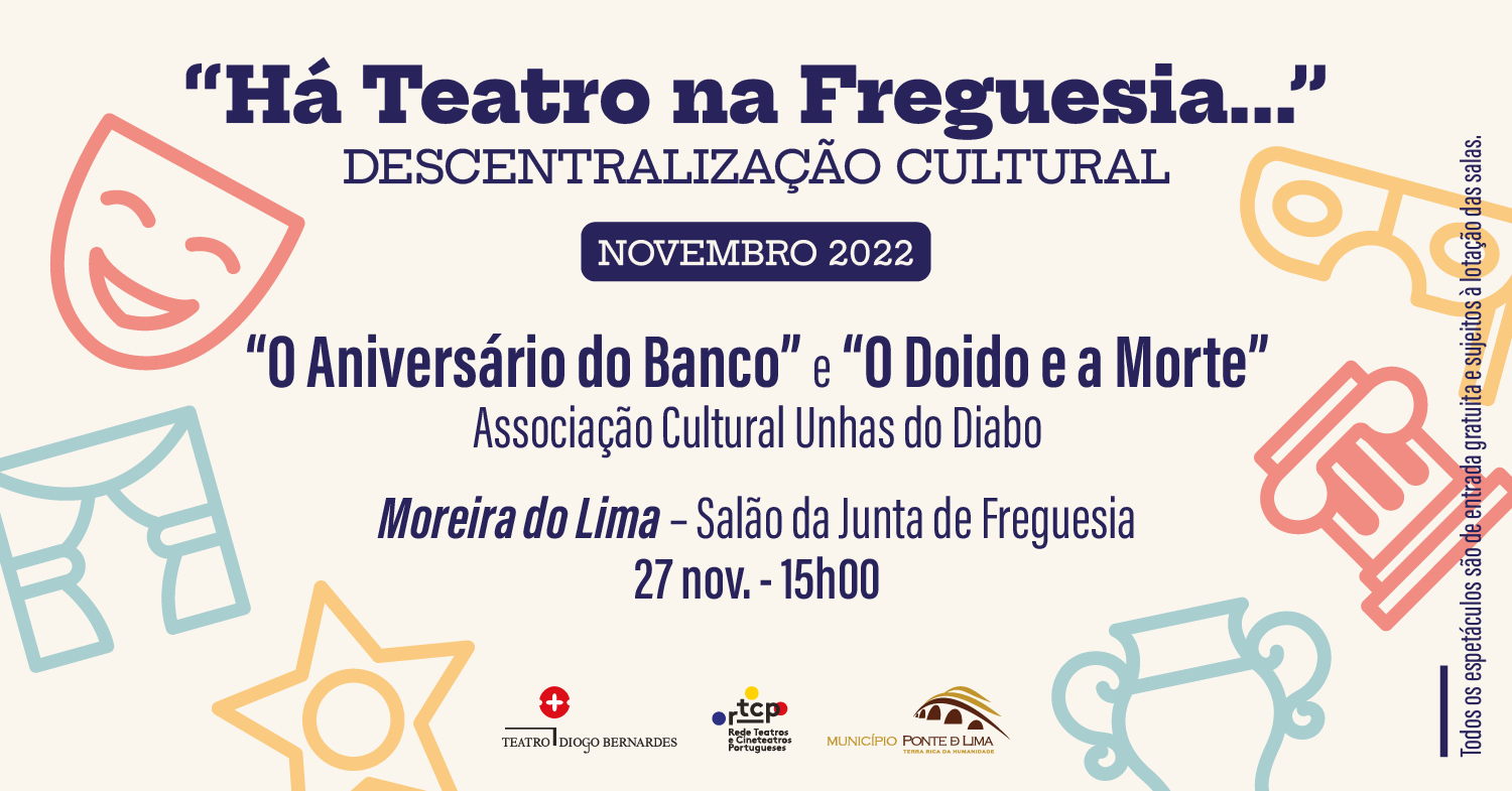 A 27 de novembro, às 15h00, Há Teatro na Freguesia... de Moreira do Lima, com o espetáculo "O Aniversário do Banco" e "O Doido e a Morte", pela Associação Cultural Unhas do Diabo, com entradas gratuitas e sujeito à lotação da sala.