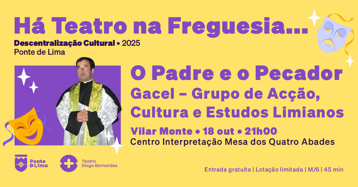 No dia 18 de outubro de 2025, às 21h00, Há Teatro na Freguesia... de Vilar do Monte, com o espetáculo "O Padre e o Pecador", pelo GACEL - Grupo de Acção, Cultura e Estudos Limianos, no Centro de Interpretação Mesa dos Quatro Abades.