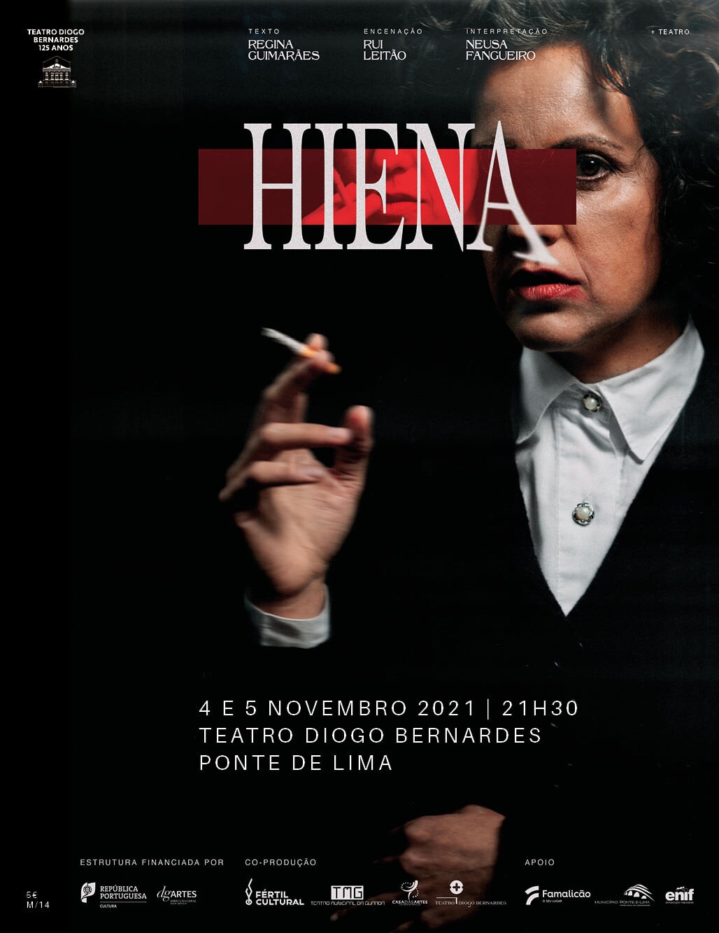 A 4 e 5 de novembro, às 21h30, o Teatro Diogo Bernardes, apresenta duas sessões, o espetáculo de Teatro "Hiena", pela Fértil – Associação Cultural.
