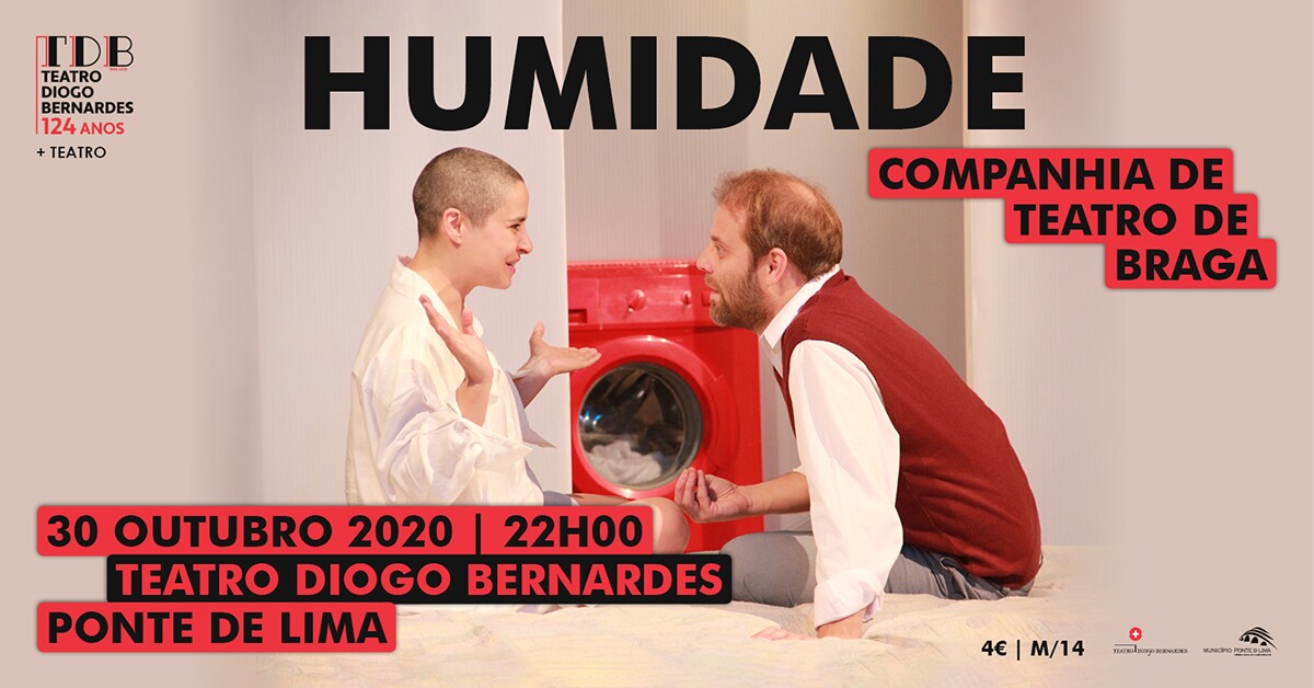 A 30 de outubro, às 22h00, no Teatro Diogo Bernardes, em Ponte de Lima, a Companhia de Teatro de Braga apresenta Humidade, um texto de Bárbara Colio, com encenação de Rui Madeira e interpretação de André Laires e Solange Sá.