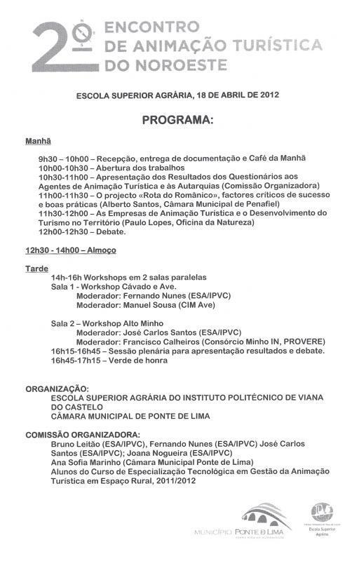 O Município de Ponte de Lima apoia a realização do II Encontro de Animação Turística do Noroeste, a realizar no próximo dia 18 de abril, na Escola Superior Agrária de Ponte de Lima.