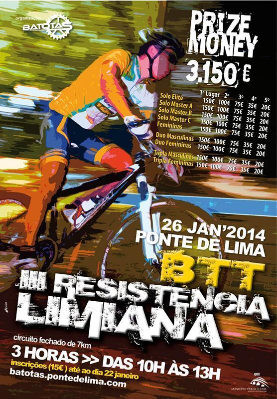 O Batotas, Clube de Desportos Radicais de Ponte de Lima, vai realizar a 26 de janeiro a "III Resistência Limiana", que consiste numa prova de resistência em BTT, com a duração de 3 horas, em circuito fechado de 7 km.