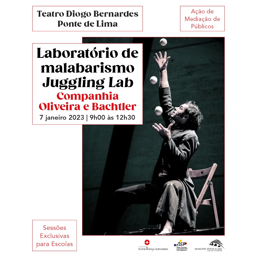 A 7 de janeiro de 2023, entre as 9h00 e as 12h30, laboratório de malabarismo "Juggling Lab", pela Companhia Oliveira e Bachtler.