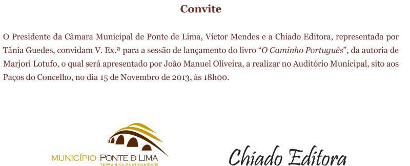 Lançamento do livro "O Caminho Português" da autoria de Marjori Lotufo, a realizar no dia 15 de novembro de 2013, às 18:00 horas, no Auditório Municipal de Ponte de Lima, com apresentação de João Manuel Oliveira.