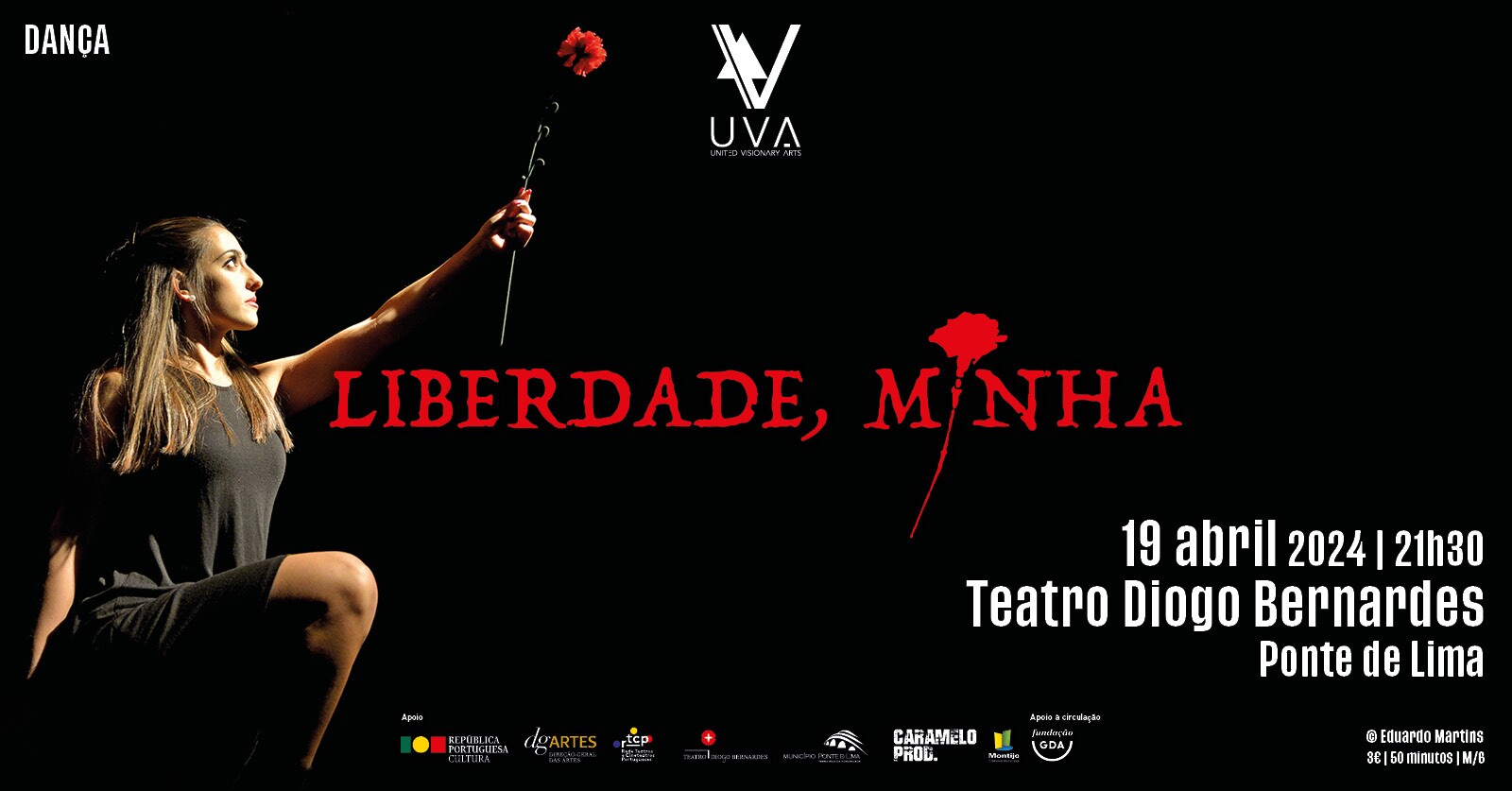 No dia 19 de abril de 2024, às 21h30, o Teatro Diogo Bernardes em Ponte de Lima apresenta, o espetáculo de dança "Liberdade Minha" | United Visionary Arts.