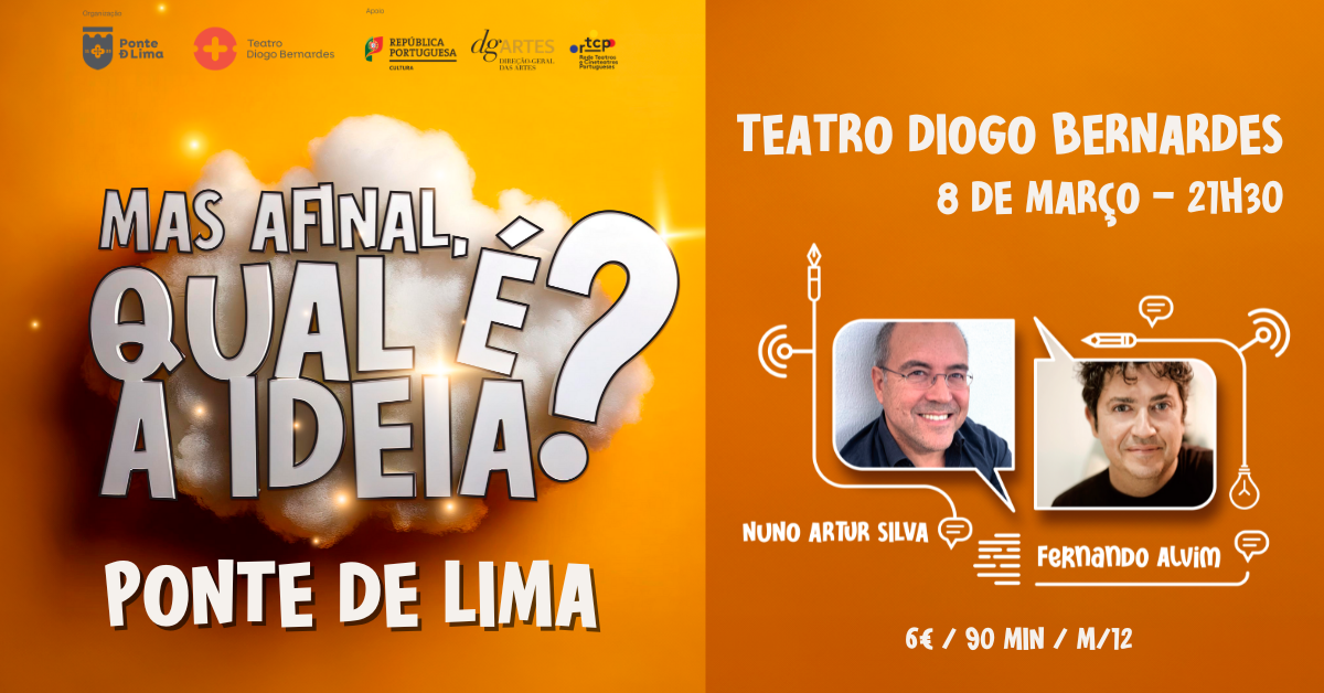 No dia 8 de março de 2025, às 21h30, o Município Ponte de Lima apresenta no Teatro Diogo Bernardes o espetáculo de comédia, "Mas afinal, qual é a ideia Ponte de Lima?" com Nuno Artur Silva e Fernando Alvim.