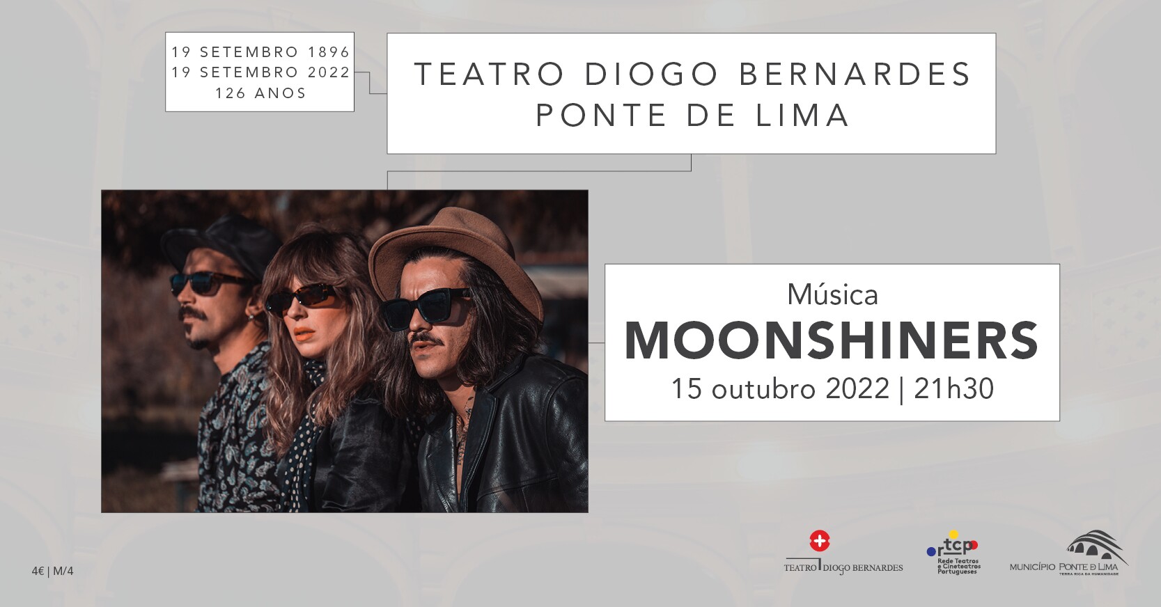 A 15 de outubro de 2022, às 21h30, o Teatro Diogo Bernardes em Ponte de Lima apresenta, o espetáculo de Música "Moonshiners".