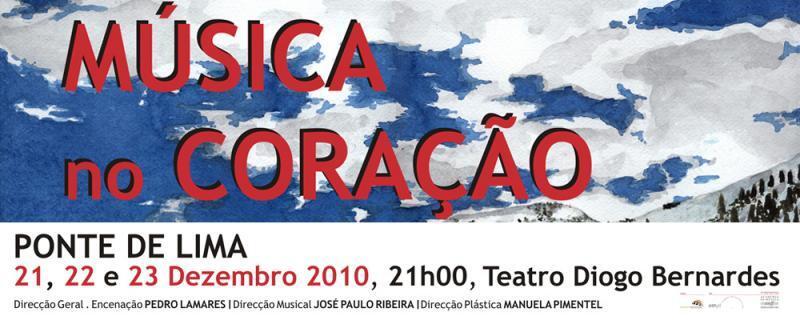 O Teatro Diogo Bernardes recebe de 21 a 23 de dezembro, a partir das 21 horas, o musical denominado "Música no Coração". Numa organização da Academia de Música Fernandes Fão com o apoio do Município de Ponte de Lima.
