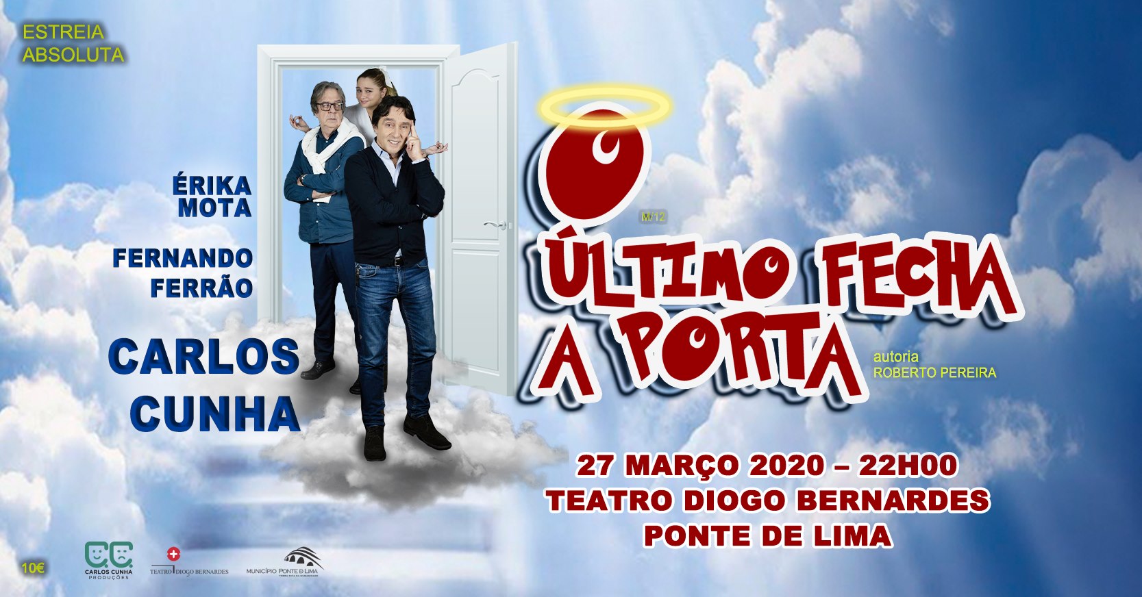 A 27 de Março, Dia Mundial do Teatro, às 22h00, o Teatro Diogo Bernardes, em Ponte de Lima, apresenta, em estreia absoluta, a comédia teatral O Último Fecha a Porta, de Roberto Pereira, pela Carlos Cunha Produções, com interpretação de Carlos Cunha, Fernando Ferrão e Érika Mota e encenação e direcção de actores de Carlos Cunha.