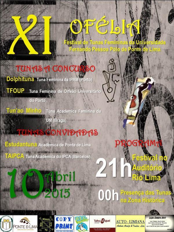 - Ofélia - Festival de Tunas Femininas da UFP - Polo de Ponte de Lima | 10 de abril - 21h | Auditório Rio Lima