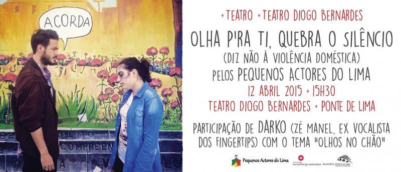 - “Olha P’ra Ti, Quebra o Silêncio (Diz Não à Violência Doméstica)” - Pequenos Actores do Lima | 12 abril – 15h30 – Teatro Diogo Bernardes