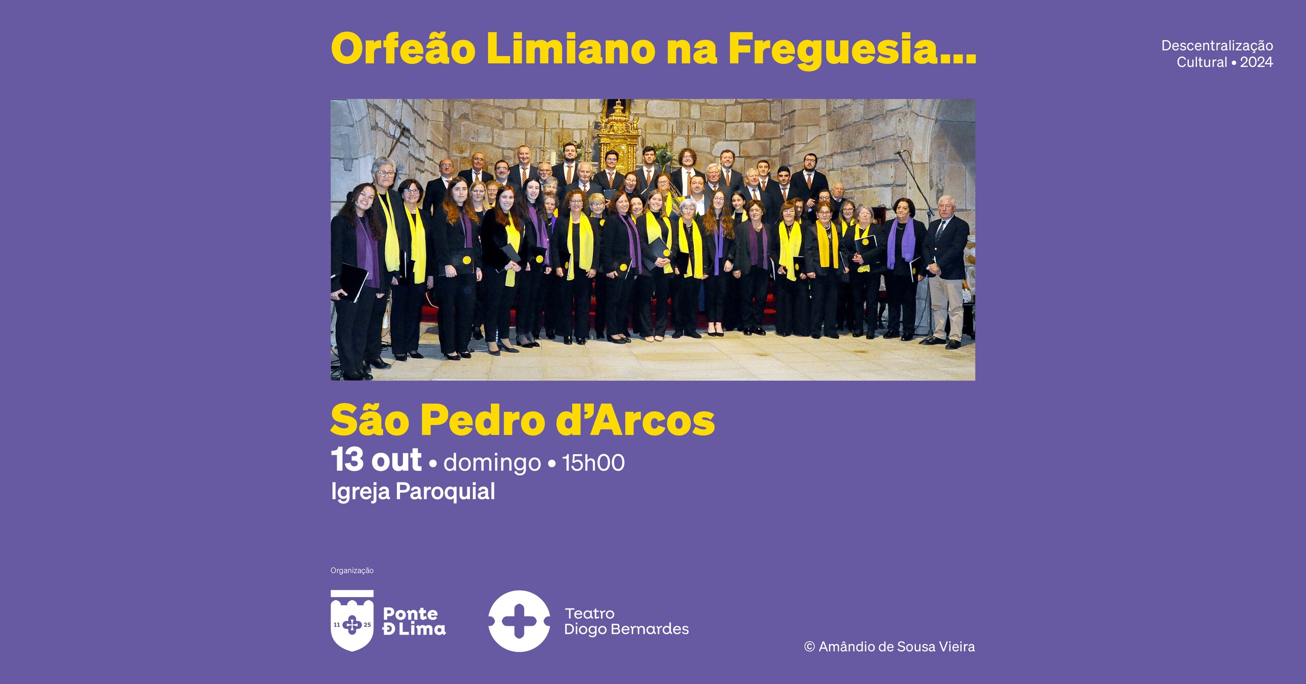 A 13 de outubro, às 15h00, concerto do Orfeão Limiano na Freguesia de São Pedro d'Arcos, com entradas gratuitas.