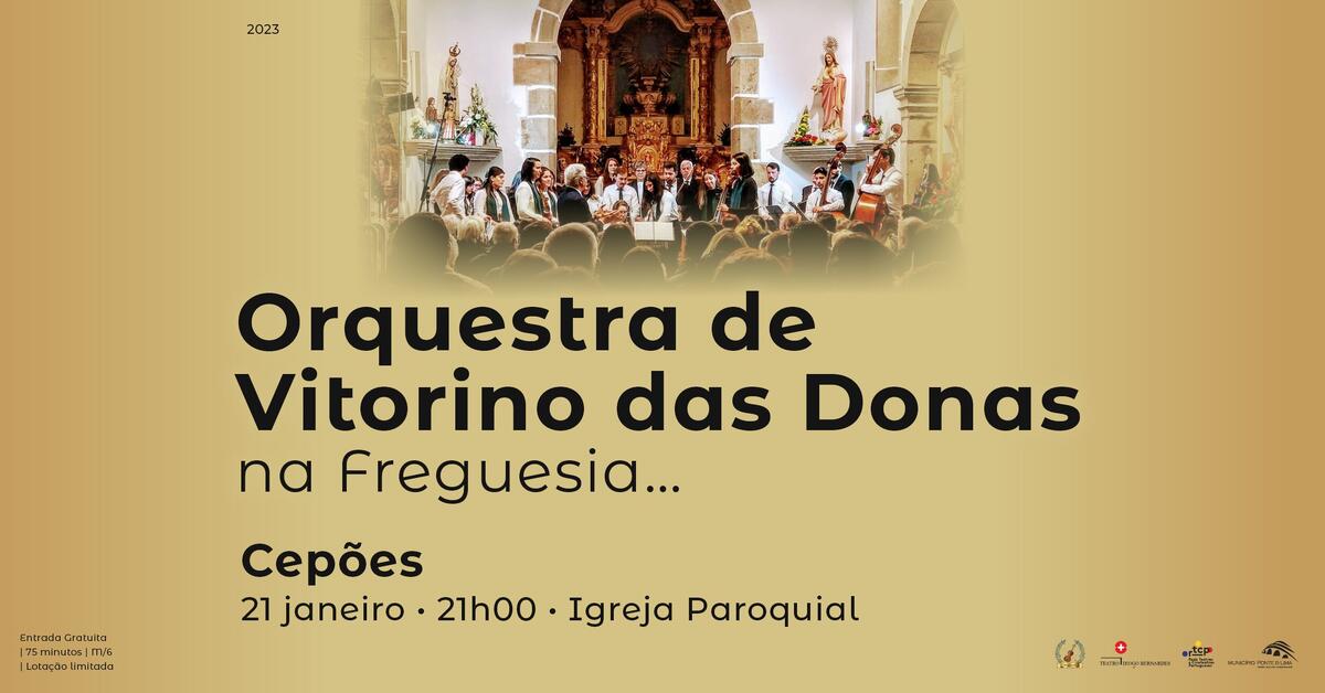 A 21 de janeiro de 2023, às 21h00, Orquestra de Vitorino das Donas na Freguesia... de Cepões, na Igreja Paroquial, com entradas gratuitas e sujeito a lotação limitada.