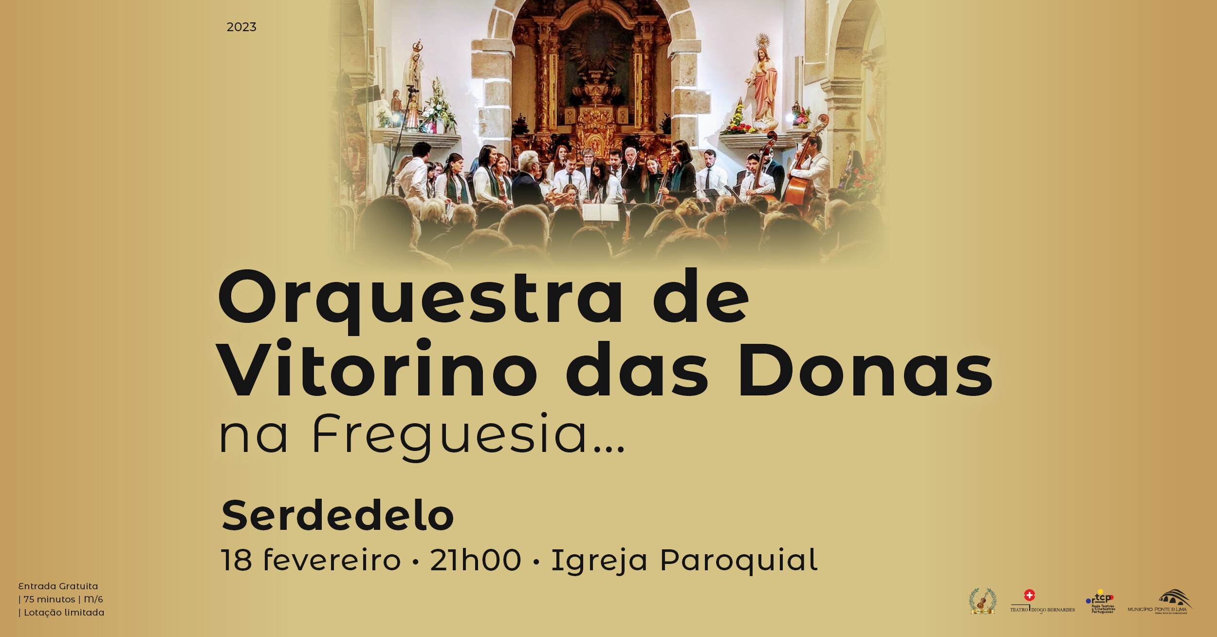 A 18 de fevereiro de 2023, às 21h00, Orquestra de Vitorino das Donas na Freguesia... de Serdedelo, na Igreja Paroquial, com entradas gratuitas e sujeito a lotação limitada.
