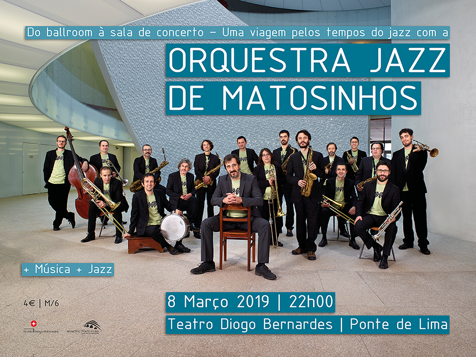 A 8 de março, às 22h00, no Teatro Diogo Bernardes, em Ponte de Lima, Do ballroom à sala de concerto – Uma viagem pelos tempos do jazz com a Orquestra Jazz de Matosinhos, no primeiro de quatro concertos pedagógicos a realizar entre 2019 e 2022, com o título genérico Uma Viagem pelos tempos do jazz.