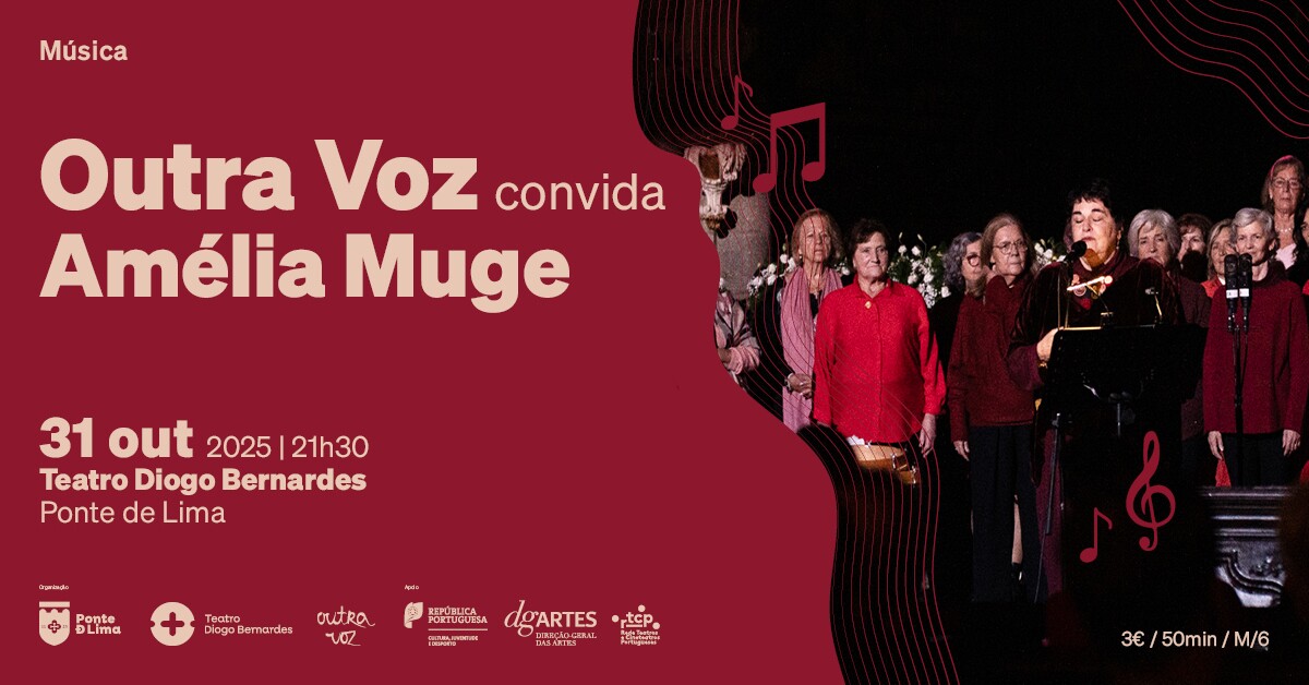 No dia 31 de outubro de 2025, às 21h30, o Município Ponte de Lima apresenta no Teatro Diogo Bernardes, o espetáculo de música, Outra Voz convida Amélia Muge.