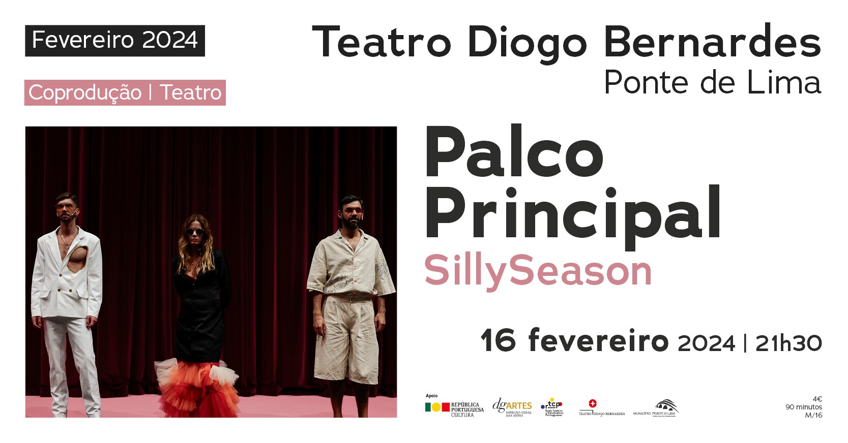 No dia 16 de fevereiro de 2024, às 21h30, o Teatro Diogo Bernardes em Ponte de Lima apresenta em coprodução o espetáculo de teatro "Palco Principal" dos SillySeason.