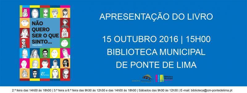 A escritora Paula Ruivo apresenta a sua última obra literária - "Não quero ser o que sinto..." - no próximo sábado, 15 de outubro, pelas 15h00, no Auditório da Biblioteca Municipal de Ponte de Lima. Habituada a um registo mais infantil em anteriores narrativas, a autora explora agora o universo juvenil abordando a complexidade do bullying em contexto escolar e fornecendo ferramentas de prevenção, de consciencialização comportamental e de reação concertada. Uma obra atual, de pertinência temática, que ajuda a identificar os sinais de alerta e a procurar a ajuda necessária para as vítimas de agressões físicas e/ou morais continuadas, geralmente incapazes de ripostar e de reagir por força de circunstâncias diversas.