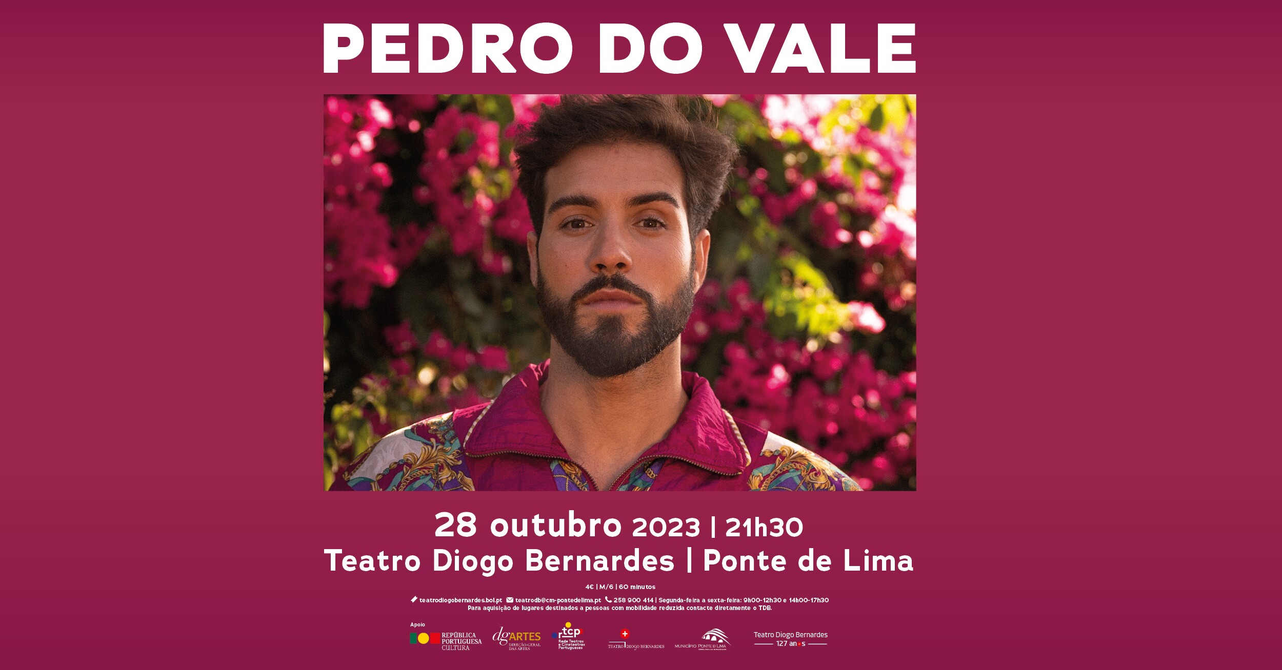 No dia 28 de outubro 2023, às 21h30, o Teatro Diogo Bernardes em Ponte de Lima apresenta o espetáculo de Música, Pedro do Vale.