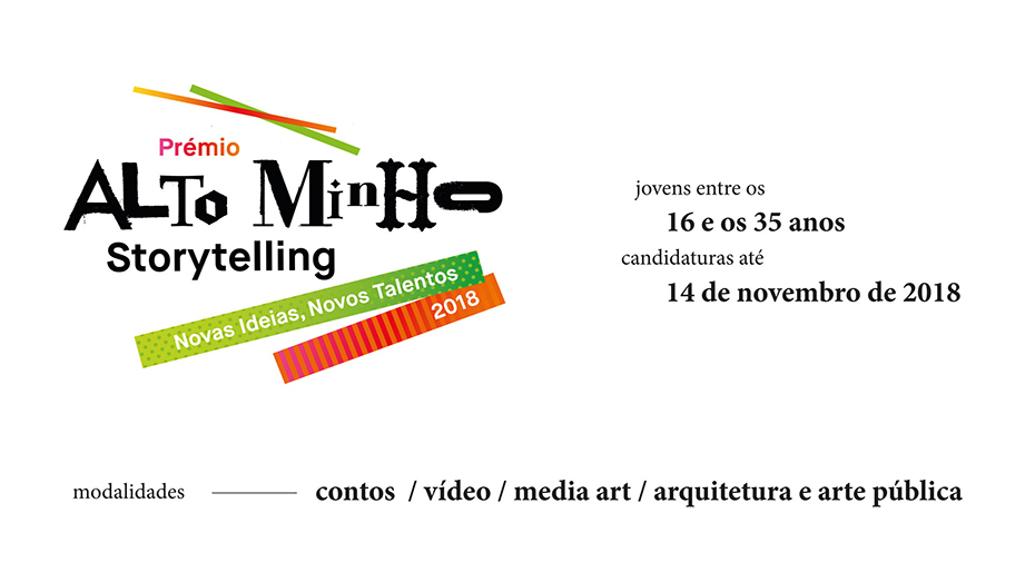 Dirigido a todos os jovens naturais do Alto Minho com idades compreendidas entre os 16 e os 35 anos, o Prémio "Alto Minho Storytelling – Novas Ideias, Novos Talentos", abrange as seguintes formas de expressão artística: conto, vídeo, media arte e arquitetura e arte pública.