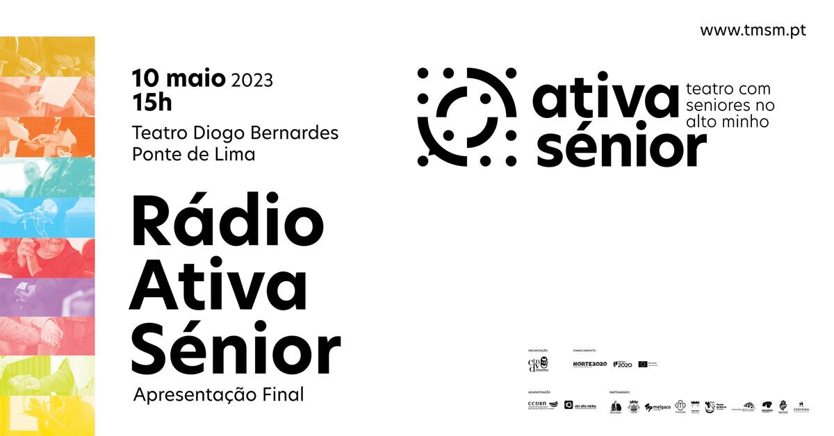 No dia 10 de maio de 2023, às 15h00, o Teatro Diogo Bernardes em Ponte de Lima apresenta, o espetáculo de Teatro "Rádio ATIVAsénior" | Projeto ATIVAsénior – Teatro com Seniores no Alto Minho.