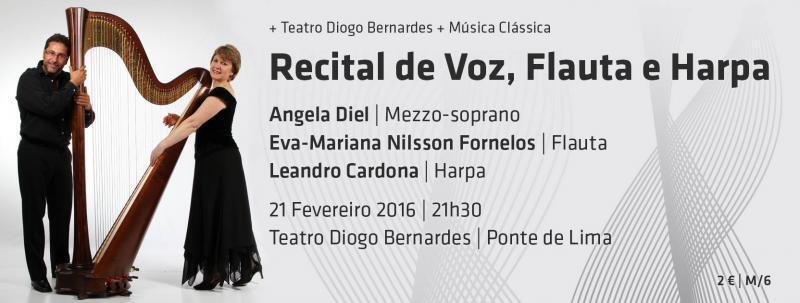 - Recital de Voz, Flauta e Harpa, por Angela Diel, Eva-Mariana Nilsson Fornelos e Leandro Cardona | Teatro Diogo Bernardes - Ponte de Lima | 21 de Fevereiro - 21:30