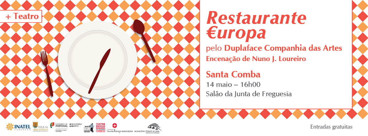 Espectáculo de Teatro "Restaurante Europa", encenação de Nuno J. Loureiro, pelo Duplaface Companhia Das Artes, com entradas gratuitas.