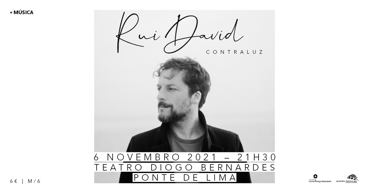 A 6 de novembro, às 21h30, o Teatro Diogo Bernardes, em Ponte de Lima, apresenta o espetáculo de Música "Rui David – Contraluz".