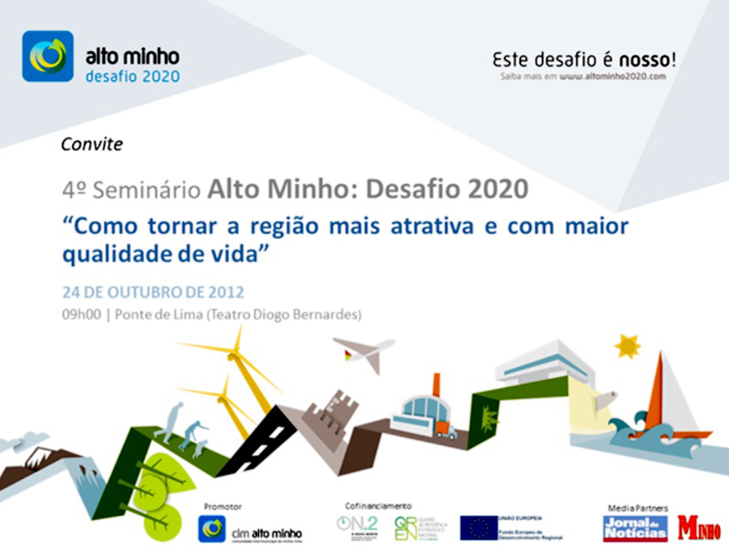 A Comunidade Intermunicipal do Minho Minho (CIM Alto Minho) promove, no próximo dia 24 de outubro de 2012, a partir das 09h, no Teatro Diogo Bernardes, em Ponte de Lima, o Seminário “Alto Minho: Desafio 2020”, com o tema: "Como tornar a região mais atrativa e com maior qualidade de vida".