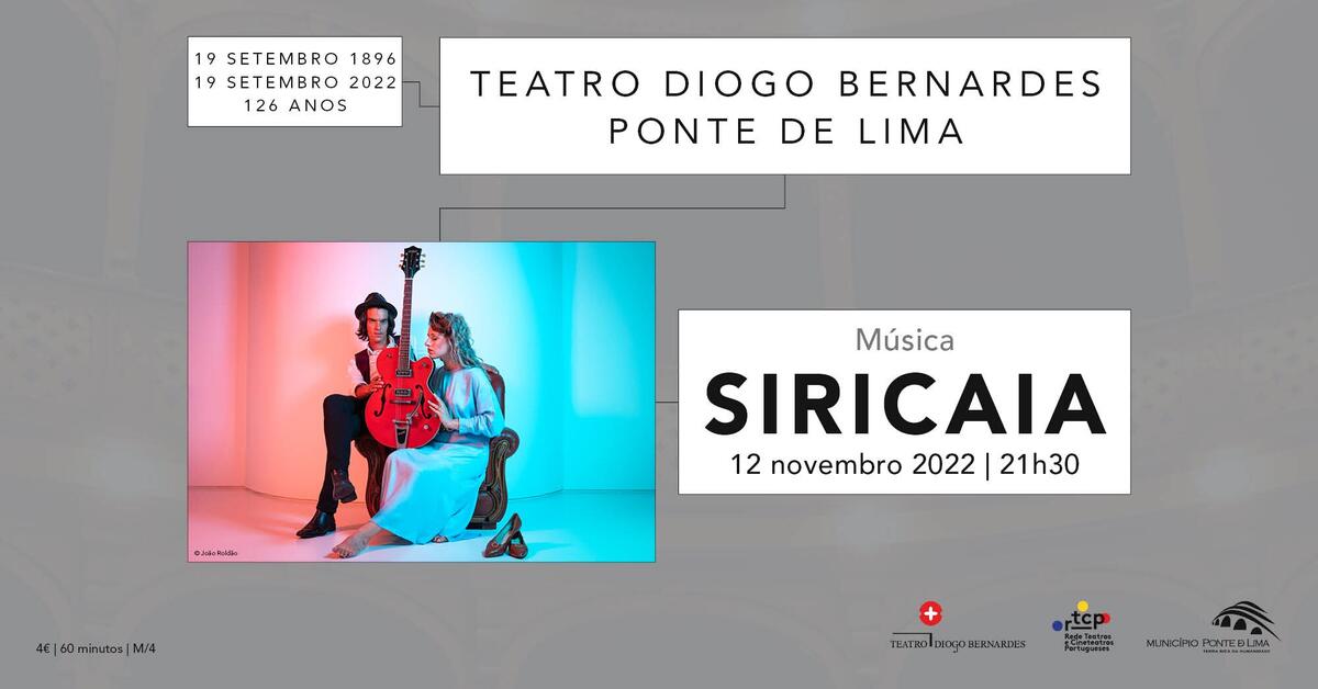 No dia 12 de novembro de 2022, às 21h30, o Teatro Diogo Bernardes em Ponte de Lima apresenta, o espetáculo de música "Siricaia".
